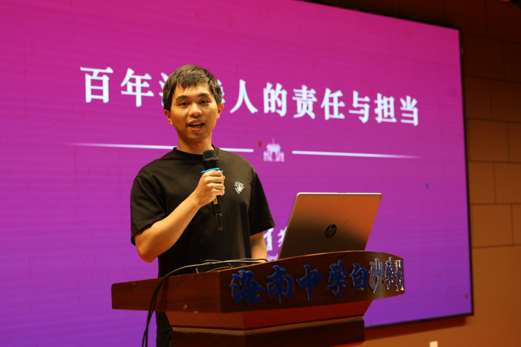 活动启幕,王一军老师率先登台,细数海南中学白沙学校的发展脉络与办学硕果,结合白沙民族地区的人文底蕴与教育变迁,向高三学子寄予深情期许:“今日,你们以作为海白学校的学子为荣,在书山题海中淬炼锋芒;明日,学校将以你们拼搏铸就的荣光为傲,见证你们奔赴山海,绽放华彩。”随后,支队队长彭卓清同学详细介绍了实践支队的组成、初心宗旨与整体规划,为后续的宣讲交流筑牢根基,让青春智慧与民族学子的成长梦想同频共振。