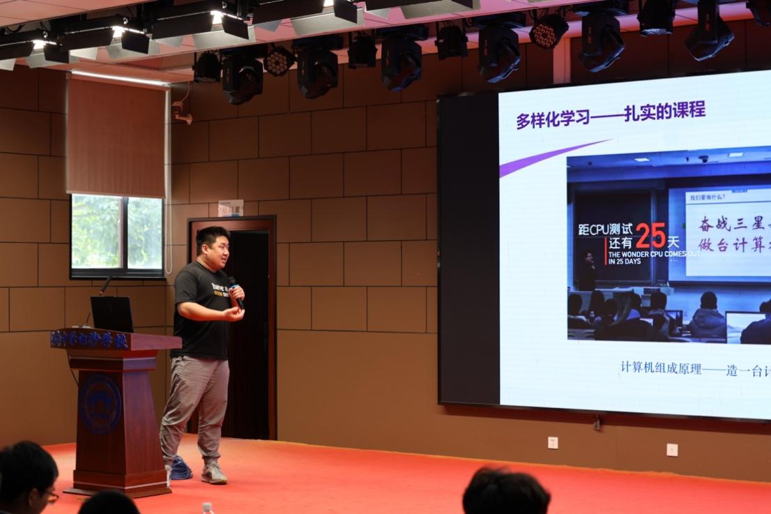 陈墨涵同学还以《园中时光,全面发展》为主题,为同学们全方位展示了清华大学丰富的校园生活。在第一部分“清华园掠影”中,从古雅的二校门、荷塘月色到现代化的紫荆公寓与文科图书馆,展现了古色古香与现代气息交织的校园风貌;在“多样化学习”部分,既有从零造计算机的硬核专业课,也有亲手铸造首饰的通识趣味,全方位拓宽视野;在“文体两开花”的部分,不仅有马约翰杯和新生赤足运动会的体育传统,更有新年联欢晚会、校园歌手大赛及各院系学生节交织出的绚烂文艺文化生活。这不仅是一场校园生活展,更是一份期待与学弟学妹未来相见的诚挚邀请。