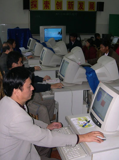 图为景洪市嘎洒小学骨干教师在学习电脑MP-LAB教学知识。杨德明 摄