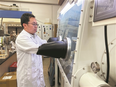 刘凯在手套箱内制备热电弹性体材料。受访者供图