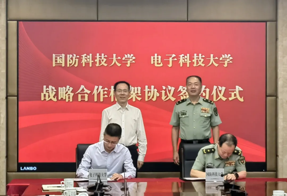 国防科技大学副校长兼教育长吴建军,电子科技大学副校长罗光春出席并代表双方签署协议,电子科技大学副校长赵志钦出席活动。