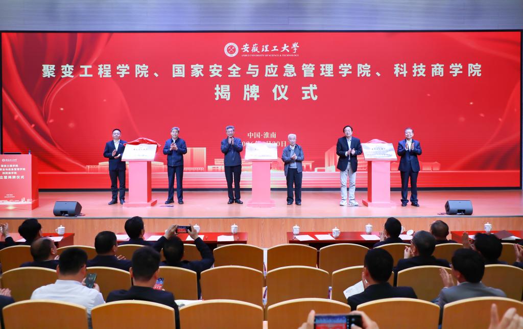 仪式上,校领导王献余宣读三个学院的成立文件。邓向阳、万元熙院士、李建刚院士、王运敏院士、余玉刚与袁亮院士共同为三大学院揭牌。安徽理工大学与中国科学院合肥物质科学研究院、合肥综合性国家科学中心能源研究院、聚变新能(安徽)有限公司签订了人才培养框架合作协议。袁亮宣读了安徽理工大学聚变工程学院第一届战略咨询顾问委员会成员名单。