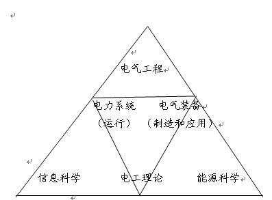 电气工程专业是学习和研究电能的产生、传输、转换和利用的专业。图1用两个三角形对电气工程进行了描述。大三角形描述了电气工程和其他相关学科的关系,小三角形描述了电气工程内部的结构。