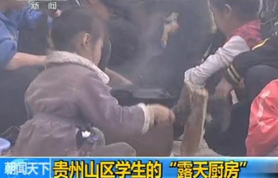 贵州:学生背柴火大米上学 “露天厨房”做饭