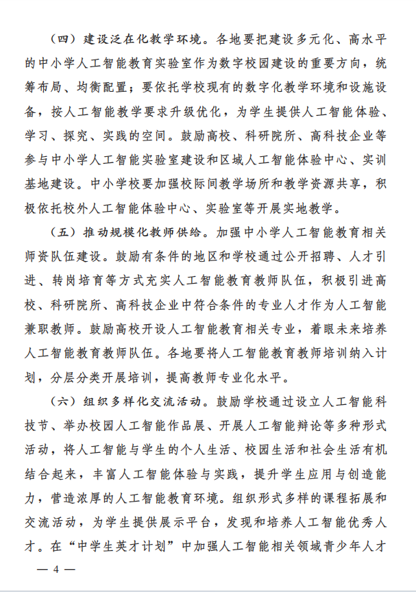 4. 统筹谋划:加强顶层设计和部门协同,2030年前在中小学基本普及AI教育。