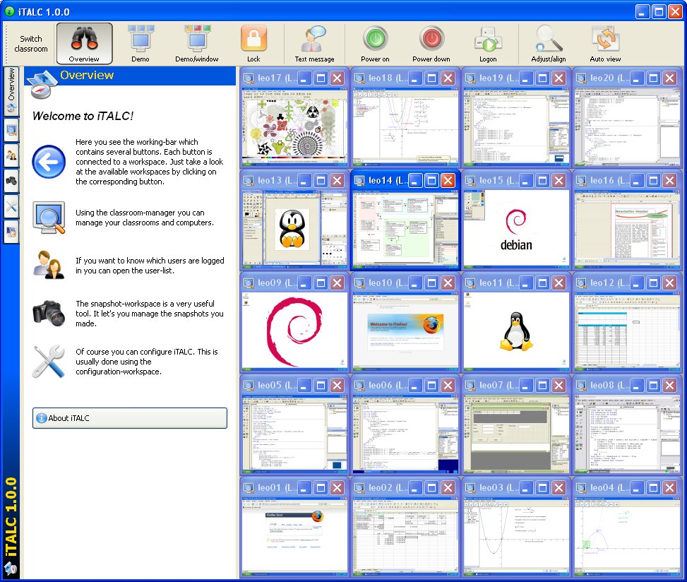 iTalc(Intelligent Teaching and Learning with Computers)是一个开放源码的电子教室管理软件,能够跨平台运行,目前支持 Linux和Windows 操作系统。