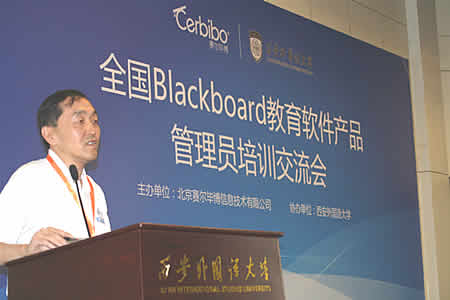 西安外国语大学副校长刘越莲女士和赛尔毕博公司总裁兼首席执行官胡水博士分别为大会致辞。刘副校长向与会人士介绍了西安外国语大学信息化所取得的优异成果。胡水博士在致辞中指出,系统管理员在Bb平台的实施过程中充当着保障平台顺利运行的关键角色;赛尔毕博希望通过一年一度的管理员培训交流会协助全国的Bb系统管理员分享优秀的实施管理经验,并为管理员们构筑深入交流,共同进步的桥梁,从而更好地为Bb平台的用户服务,携手促进国内院校教育信息化的长足发展。西安外国语大学英文学院副院长李芳军教授在随后的主题发言环节与在场嘉宾共同回顾和分享了西安外国语大学英文学院Bb平台的应用情况。
