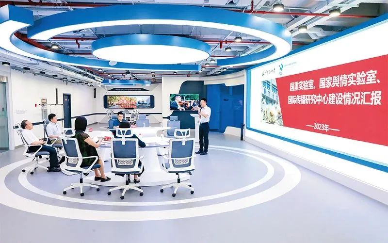 教育部党组巡视聚焦高等教育“四个服务”时代使命,把服务国家重大战略作为巡视监督重点内容。图为2023年6月1日,教育部党组第一巡视组在中国传媒大学调研教育部首批试点建设的9家哲学社会科学重点实验室之一——国家舆情实验室。 教育部供图