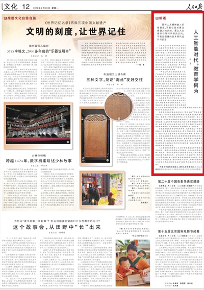 近日,《人民日报》刊发了清华大学党委书记邱勇题为《人工智能时代,教育学何为》的文章。文章指出,人工智能时代更要讲人文,教育强国建设更要加强教育学的研究。要将人文精神融入价值塑造,不能让技术算法禁锢人的认知。要让人文情怀引导科学探究方向,不能让便捷的技术替代追问与反思。特刊登全文,以飨读者。