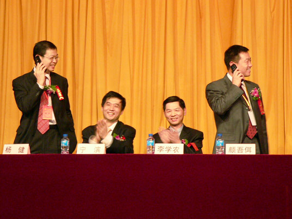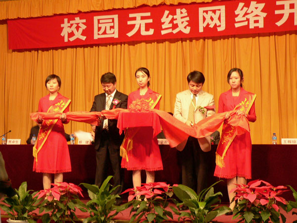 会上,CERNET专家、中行领导也分别发 表了讲话。王稼琼副校长和中行领导一起为校园无线网络开通剪彩。之后,华为-3Com公司领导向学校赠送了Wi-Fi和GSM双模手机,并由颜书记拨通了 我校无线网的第一个Wi-Fi语音呼叫。开通仪式最后贾卓生主任对支持我校无线网建设的所有来宾表示了衷心感谢。