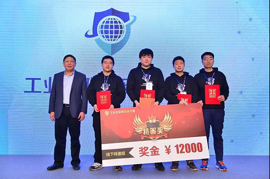 在线下决赛的比赛中,Nu1L战队解出7道题,得分4665.7,以领先将近1000分的优势又将冠军宝座收入囊中,本次比赛他们拿到了本地提权(LPE)、Web渗透(RCE)、XX工厂生产安排计划、XX能源关键系统账号、XX工厂单晶炉工艺参数五道题的一血,一次次打破记录,引来现场呼声不断,最终,郝叶力少将为他们颁发两万五千元奖金及荣誉证书。