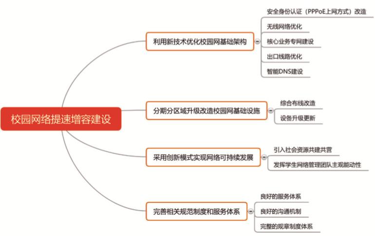 对于校园网主干及出口核心网络设备,常常牵一发而动全身,因此,也需要逐步进行更新升级和替换,配合出口线路优化进行策略调整,加强园区网络出口安全管理,提升园区网络基础设施的质量。