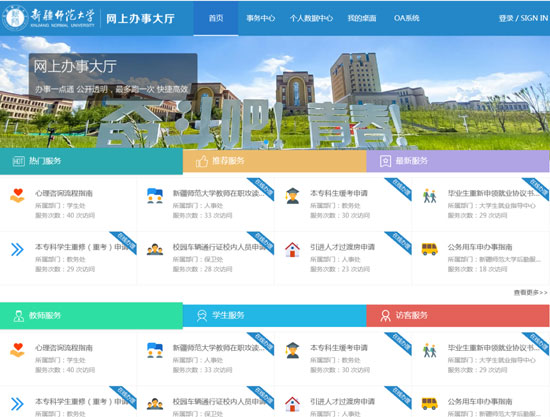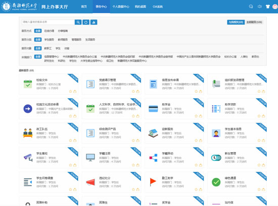 2021年3月29日,新疆师范大学网上办事大厅正式上线,大厅以师生员工为主要服务对象,以师生需求为向导,打造“一网通办”的新型模式。信息管理中心通过前期走访调研14个单位,梳理业务服务事项,首批上线了58个网上办事服务,进一步加强对学校日常管理和服务工作的信息化支撑力度,提高师生办事体验,以信息技术有力支撑学校传统管理与服务的转型升级。