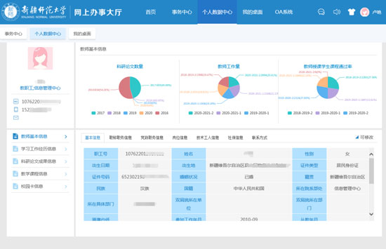 学校构建的校级数据中心及个人数据中心,每天进行的数据交换作业661个,共1259张表,日共享数据量达三亿三千五百万条。通过数据治理、构建数据中心,最终形成了学校有效的数据资产,为全校师生提供高质量的数据服务。直观体现在网上办事大厅上办事,涉及师生个人信息的表格,可以实现“一次填报,重复使用”,避免误填、错填、重复填,提升学校师生在信息化层面的幸福感体验。