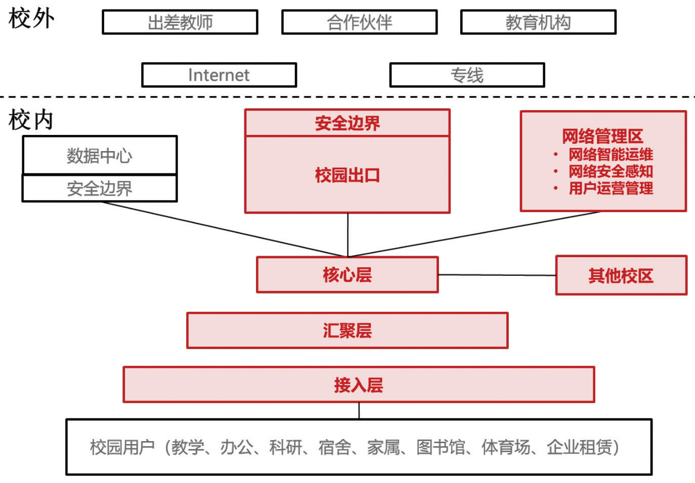 用户体验为核心。校园网的建设以提升应用体验为核心目标。建设过程中注重满足不同应用场景对带宽、延迟和稳定性的需求,以确保师生在学习、科研和生活等方面都能享受到高质量的网络服务。