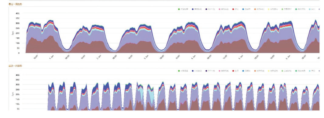 校园网承载能力显著提升。新校园网的承载能力得到了显著提升(图3-4),目前运行以来,最大总出口流量可达80G。