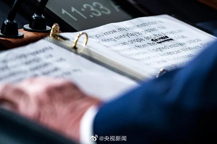 △据CNN报道:美国总统特朗普19日在白宫新闻发布会上的讲稿被记者拍下。照片显示,稿件中的“新冠病毒”被划掉,手写改为了“中国病毒”。