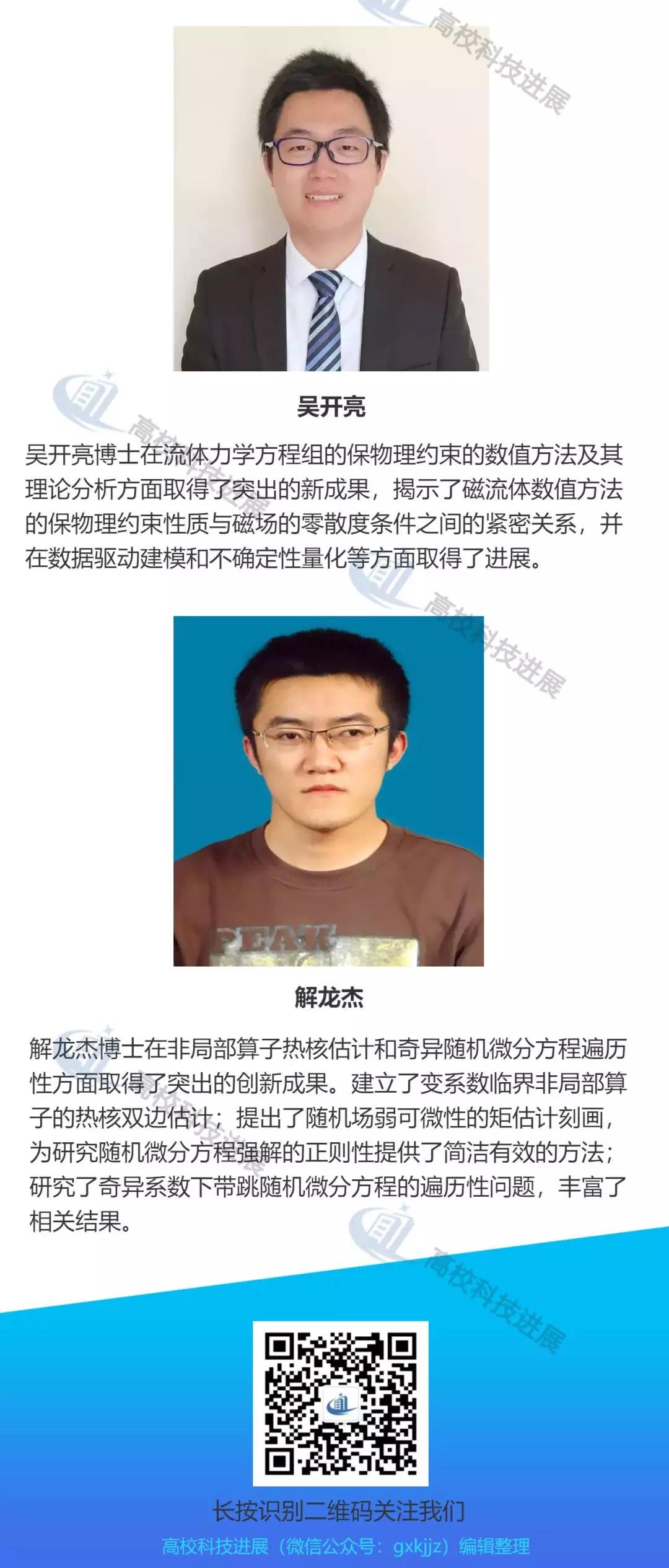 江苏师范大学解龙杰博士、香港中文大学邱国寰博士、美国加州圣塔芭芭拉分校崔春风博士和美国俄亥俄州立大学吴开亮博士获得本届“钟家庆数学奖”。本届获奖者所在高校,均为首次“入榜”“钟家庆数学奖”名单。
