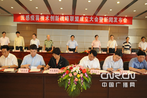 6月4日,应对甲型H1N1流感防控科技组在京召开流感疫苗技术创新联盟成立大会,战略联盟的成立,是对我国流感疫苗研发和生产队伍的一次全面检阅,也是对联盟成员单位的一次总动员,标志着我国流感疫情的科技应对工作进入了新的阶段。战略联盟必将在我国流感疫情的防控和流感疫苗的研发、生产、储备中发挥关键作用。