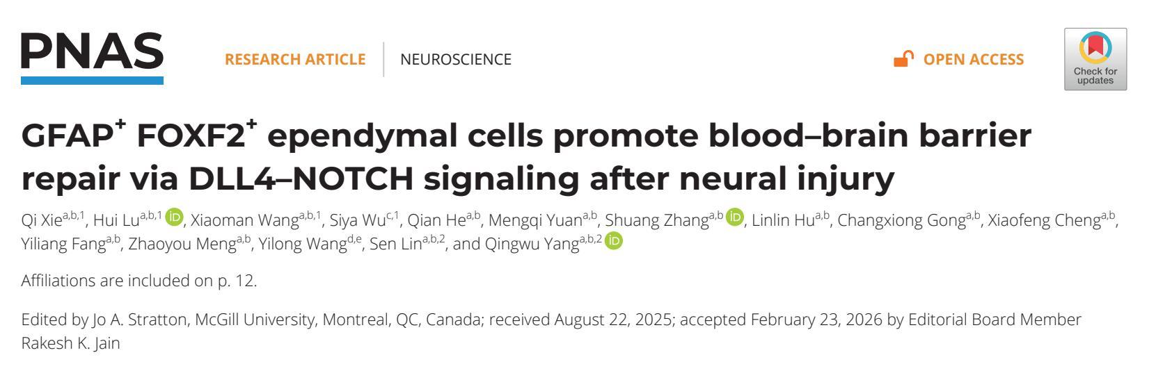 3月25日,陆军军医大学新桥医院神经内科杨清武教授团队在《美国国家科学院院刊》(PNAS)发表研究,首次揭示大脑中一个远离损伤灶的“隐秘区域”能被激活,远程派送关键修复信号,助力受损血脑屏障重建,为脑卒中后的神经功能恢复提供了新思路。