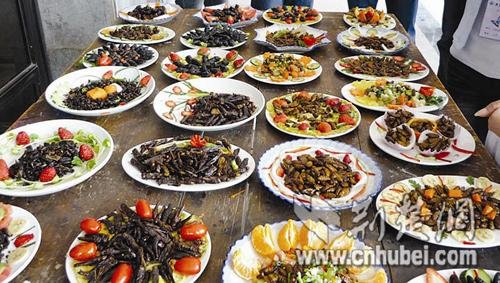 前日下午,位于荆州的长江大学农学院推出一顿丰盛的“昆虫宴”,引得近千名师生竞相品尝。