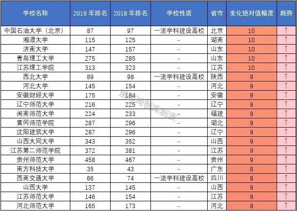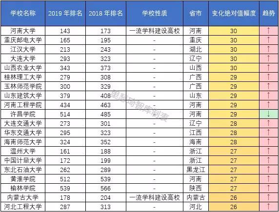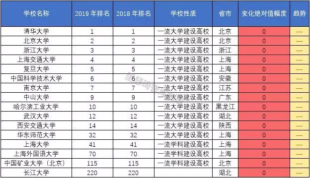 1、排名无变化为稳定型大学