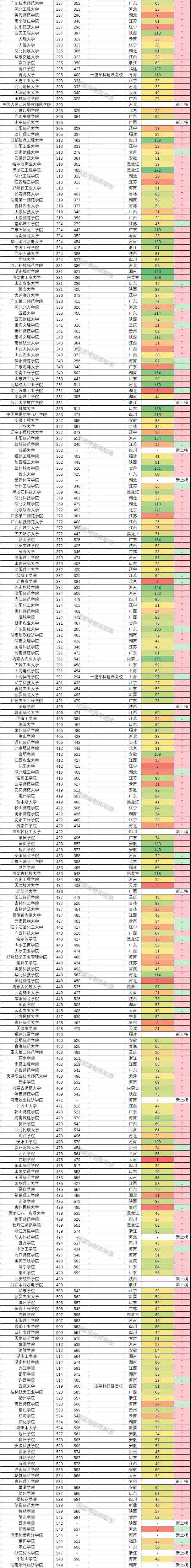 明显波动型大学共有260所,占比为47.4%,其中上升242所,下降18所,名单如下表4所示: