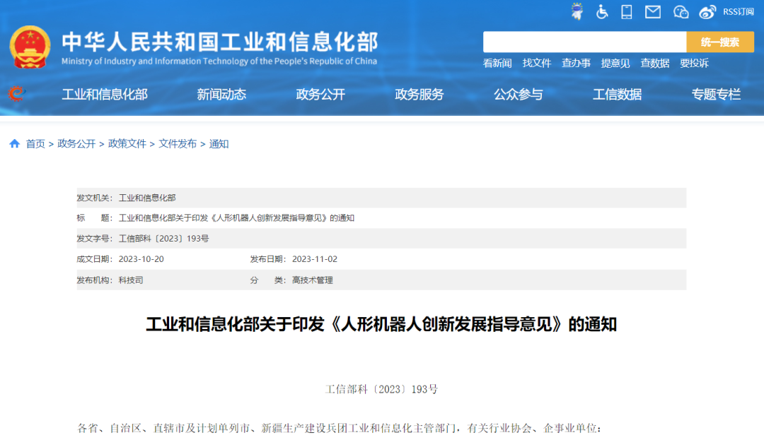 11月2日,工业和信息化部印发《人形机器人创新发展指导意见》(以下简称《指导意见》),以推动人形机器人产业高质量发展,高水平赋能新型工业化,有力支撑现代化产业体系建设。