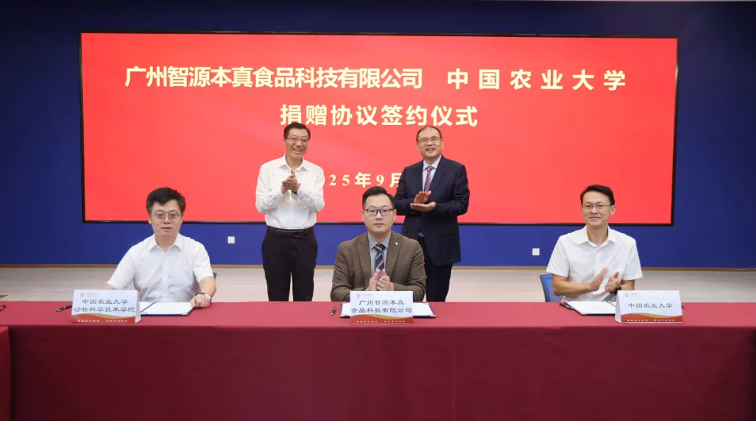 9月28日,广州智源本真食品科技有限公司与中国农业大学捐赠协议签约仪式在中国农业大学举行。广州智源本真食品科技有限公司向中国农业大学捐赠1.2亿元,设立“一带一路”肉牛产业发展基金,主要用于科研攻关与产业服务,以及支持学校的人才培养、学科建设与国际交流。