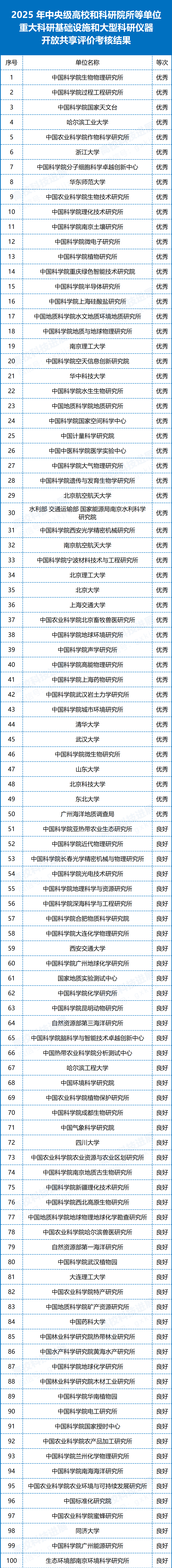 附:2025年中央级高校和科研院所等单位重大科研基础设施和大型科研仪器开放共享评价考核结果