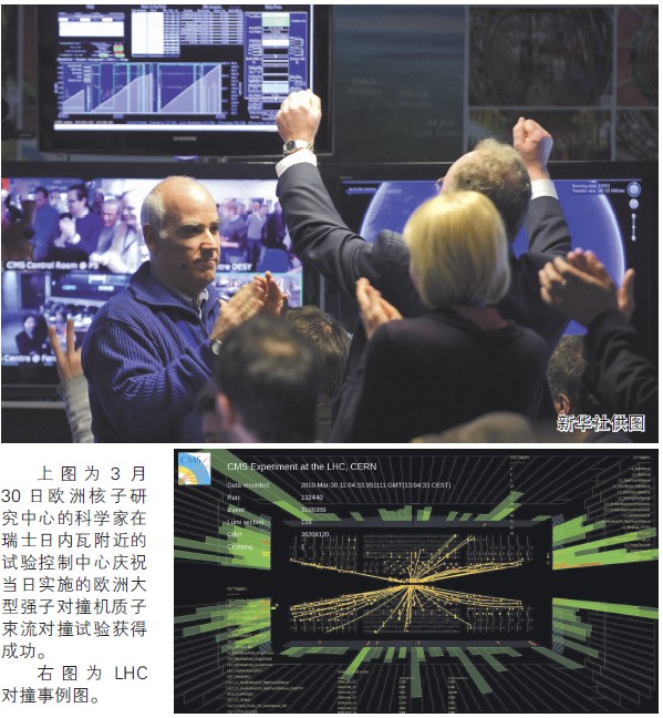 “此次对撞成功,标志着LHC的物理研究的开始,标志着一个激动人心的粒子物理新时代的到来。”中国科学院高能物理研究所粒子天体物理中心研究员陈国明说。