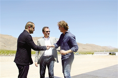 5月11日,“超回路1号”公司首席执行官罗布·劳埃德(中)和两位联合创始人沙尔文·皮谢瓦尔(左)、布罗根·班布罗根(右)庆祝。
