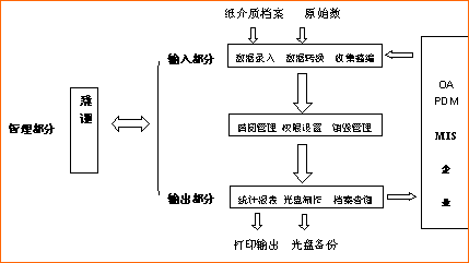 其中系统设置子系统的强大自定义功能使得可以让用户自己量身定制,所以它将比其他任何系统更加符合用户自身的需求。数据录入、数据转换和收集整编子系统提供了用户非常丰富的数据录入和收集手段。不仅可以录入介质档案,而且能够将用户过去录入的档案条目自动转换入库。另外,收集整编子系统为使用单位提供了档案与等其他系统接口,同时也为用户提供了档案的收集整编功能。光盘制作、统计报表和档案检索子系统则对用户所存的电子档案提供了多种的输出方式。其中光盘制作可以制作出符合国家标准的通用电子档案光盘;统计报表可以按用户的要求输出各种格式的报表;而检索查询则可以嵌入用户的应用系统之中(如 OA、MIS或DPM)提供用户网上查询浏览和下载的功能。