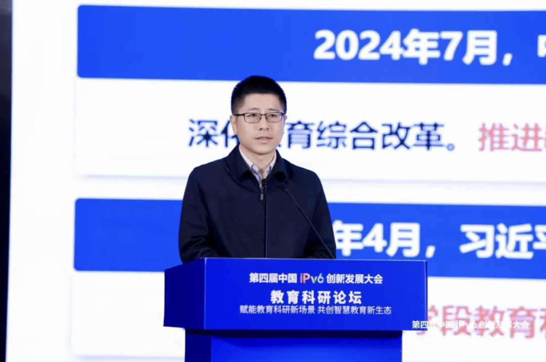 在第四届中国IPv6创新发展大会教育科研论坛上,教育部科学技术与信息化司教育信息化与网络安全处处长任昌山发表了题为《落实国家战略,加快教育数字化转型,深入推进教育系统IPv6规模部署与应用》的特邀报告。他表示,教育部将IPv6等下一代互联网技术与教育数字化战略行动相结合,把推进IPv6规模部署和应用作为推进教育新型基础设施建设的重要组成部分予以重点推进,全面深化教育系统IPv6规模部署和应用。未来,教育部将全面构建教育系统IPv6规模部署与应用的崭新生态。