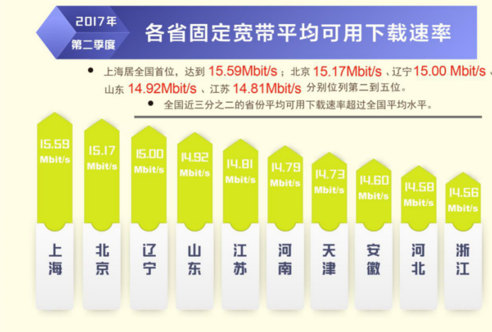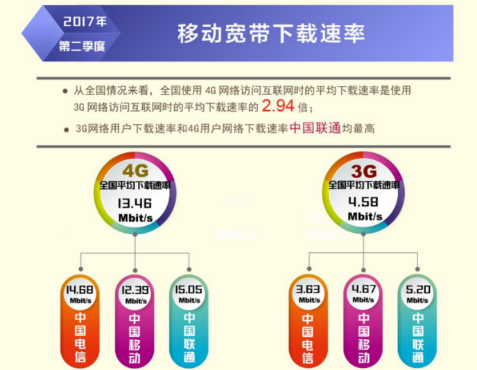 自2015网络“提速降费”工作开展以来,我国固定宽带可用下载速率连续10个季度持续提升,总提升幅度达到3.3倍。同时,我国移动宽带用户使用4G网络访问互联网时的平均下载速率达到13.46Mbit/s,环比2017年第一季度提升14.2%。