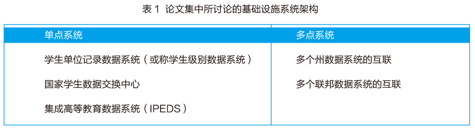 2014年3月,美国高等教育政策研究所(Institute for Higher Education Policy,IHEP)发表了报告《描绘高等教育数据领域:问题和可能性》(以下简称“《描绘》一文”),概述了在向学生、政策制定者和学校提供有用和可靠的相关信息以使他们了解高等教育系统中学生成就的情况时,高等教育的利益相关者们所必须回应的关键问题和必须采取的核心措施。获得有意义的、与学生教育成效有关的信息而推动教育的改进需要更高质量的数据,无论这些数据来自于现有的系统方案,还是来自于考虑中的系统建设的可选方案中。研究者们普遍认同,目前可用的数据是不充分的,因而国家高等教育数据基础设施需要改革以对数据的采集、共享和分析加以改进。