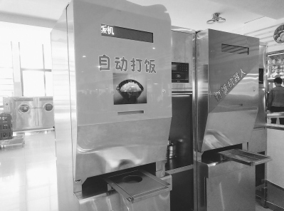 近日,福建师范大学食堂出现的一台自动打饭机引起了不少网友的关注(如图)。据悉,使用者只需将铁碗放进卡槽,刷饭卡后,自动打饭机就会“吐”出一团压成长方形的饭团。一台自动打饭机可以满足1000人的需求,30秒就能打10份。