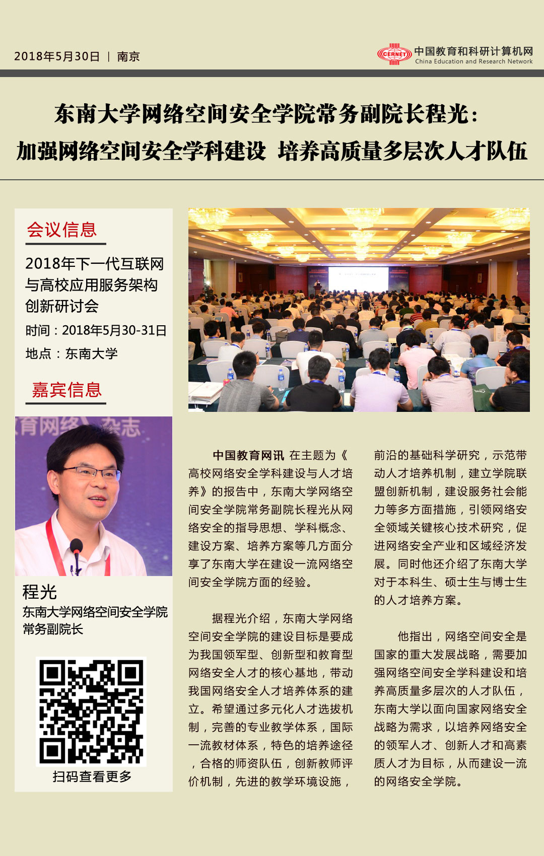 会上,东南大学网络空间安全学院常务副院长程光做了题为《高校网络安全学科建设与人才培养》的专家报告。