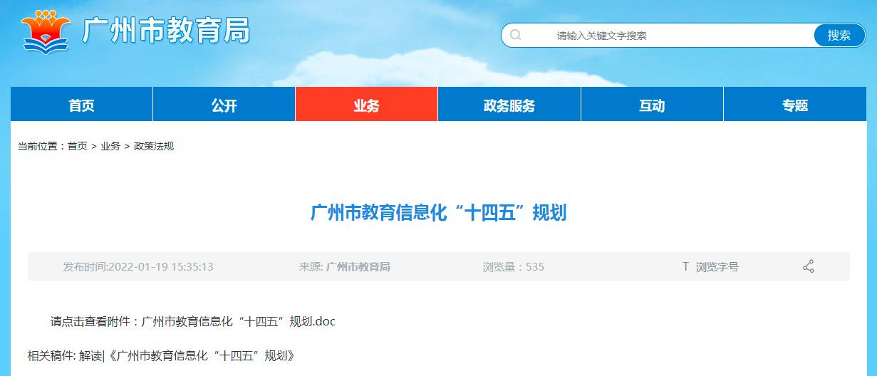 日前,广州市教育局发布《广州市教育信息化“十四五”规划》(以下简称《规划》)。《规划》指出,到2025年,建成全国“智慧教育示范区”,全面推进教育数字化转型、智能化升级,以教育信息化服务教育改革发展,促进广州教育优质均衡和高质量发展,全面支撑和引领教育现代化。