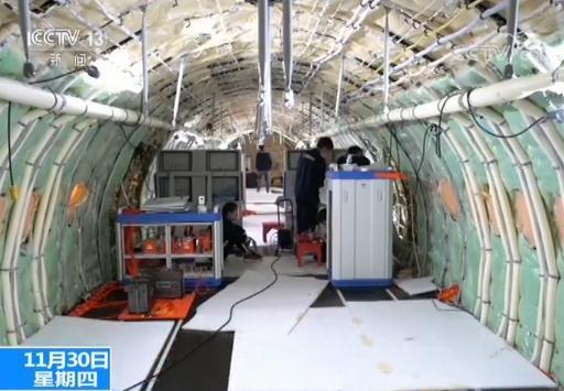 在总装车间记者看到,102架机目前正在安安静静地接受着技术人员的各种调试。它的机身内部,跟101架机一样,并没有进行特别的装饰,更没有安装座椅,而是装了很多实验设备。