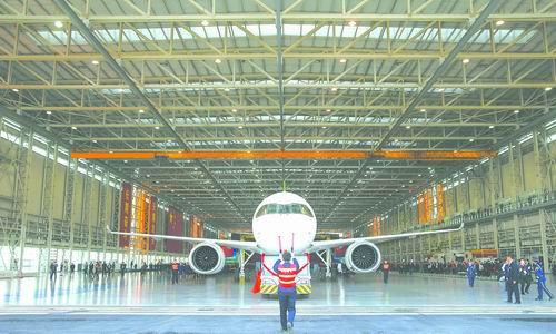 11月2日,国产大型客机C919首架机揭开面纱。新华社记者裴鑫摄