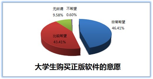 尽管盗版现象严重,但并不代表用户支持盗版,相反,众多被调查者希望使用正版软件,这一比重高达90%。