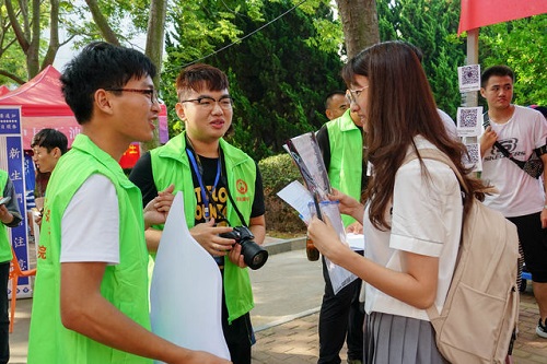 新生询问志愿者信息。摄影/石庆毅