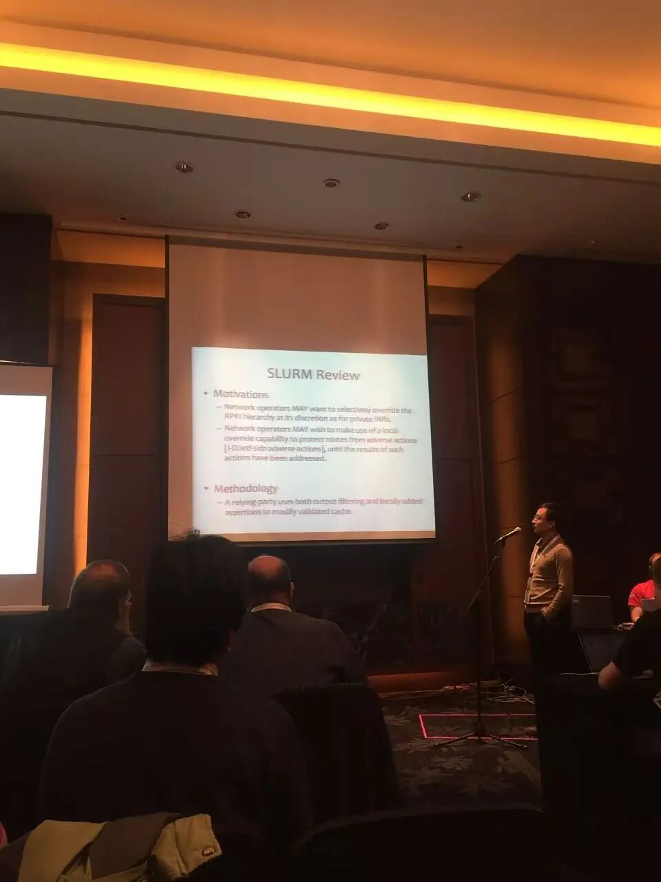 马迪在IETF97(韩国-首尔)宣讲RPKI本地化管理标准提案(2018年发布为RFC8416,第一篇由中国人作为第一作者的RPKI核心技术标准)