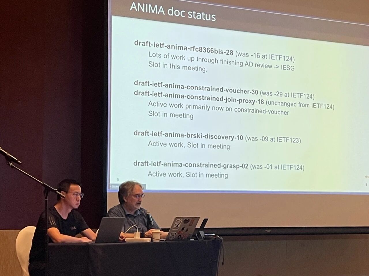 回国后我加入华为,岗位定位是专职从事IETF标准化制定工作,此后十五年我几乎参加了所有线下的IETF会议。截至目前,我参与制定的RFC共有31篇,涵盖IPv6基础协议、DHCP、移动IPv6、网络管理等领域。2014年,我在IETF创建了运维与管理领域(OPS)的自治网络集成模型与方法(ANIMA)工作组,并担任工作组主席12年。